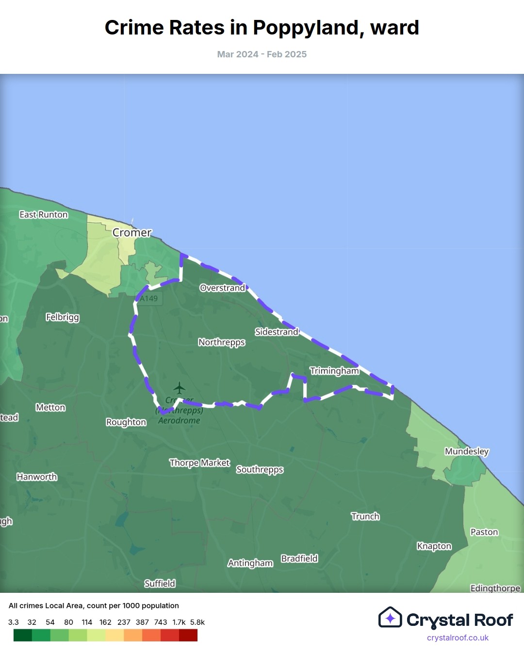 Poppyland, (ward) includes areas with the following crime ratings (see map):
