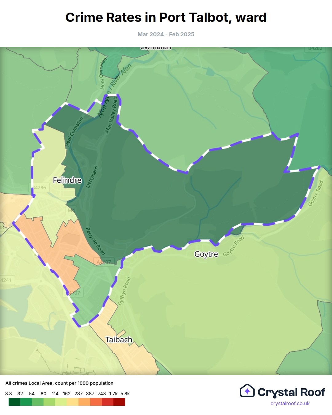 Port Talbot, (ward) includes areas with the following crime ratings (see map):