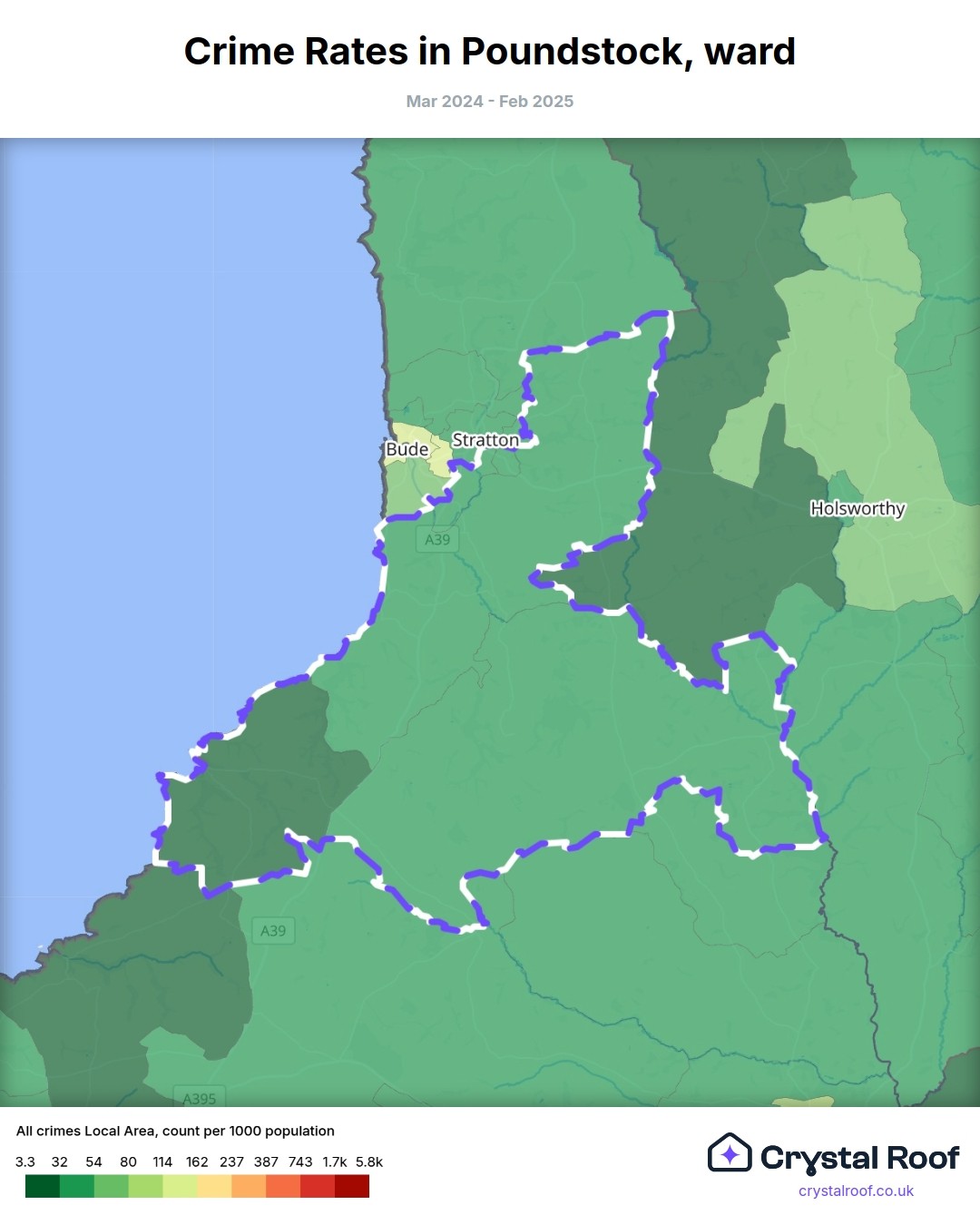 Poundstock, (ward) includes areas with the following crime ratings (see map):
