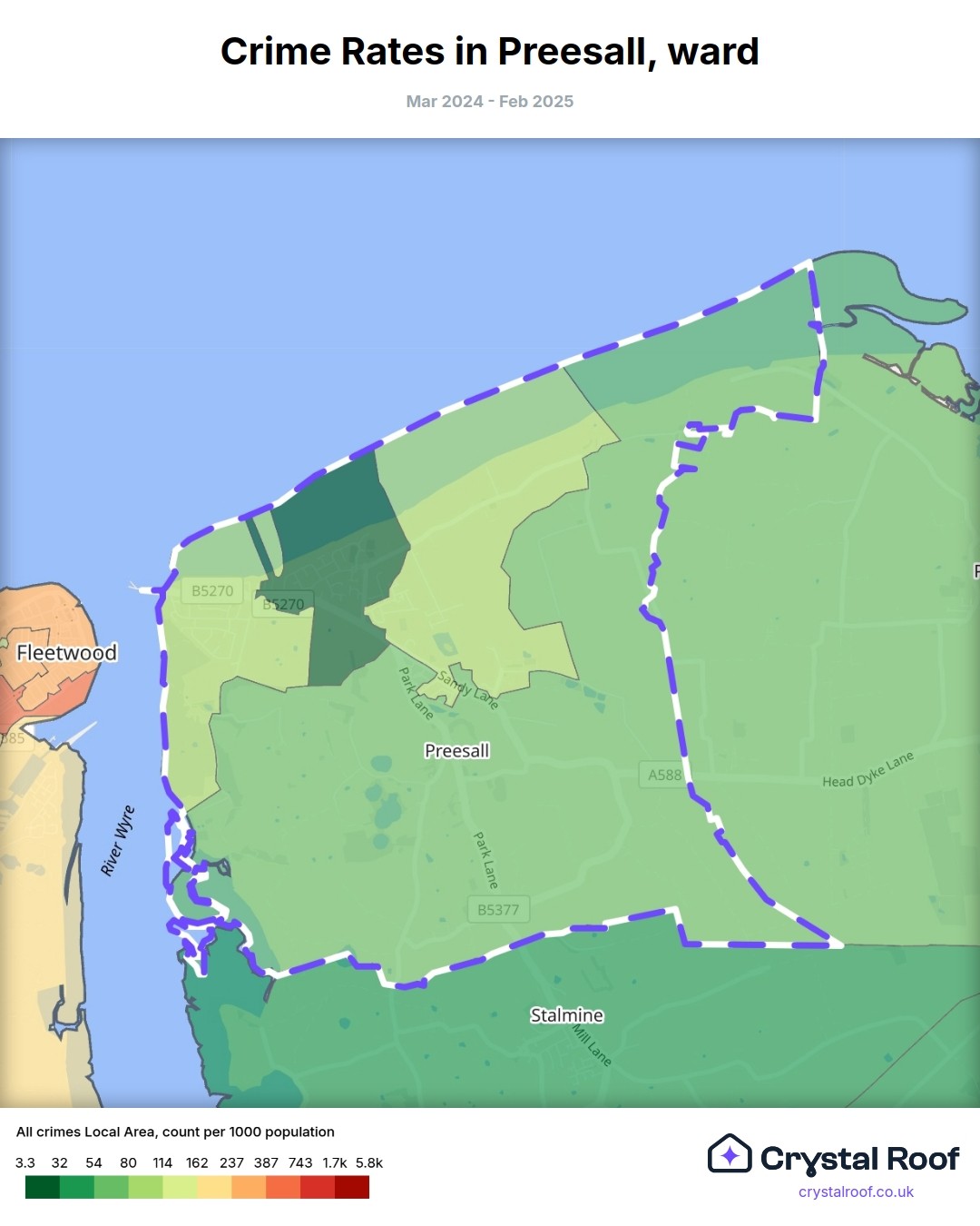 Preesall, (ward) includes areas with the following crime ratings (see map):