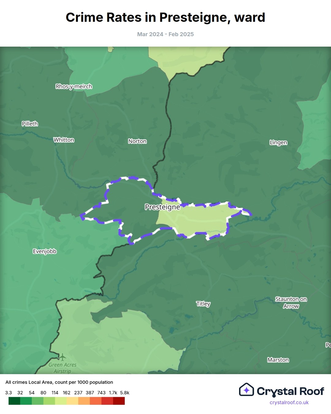 Presteigne, (ward) includes areas with the following crime ratings (see map):