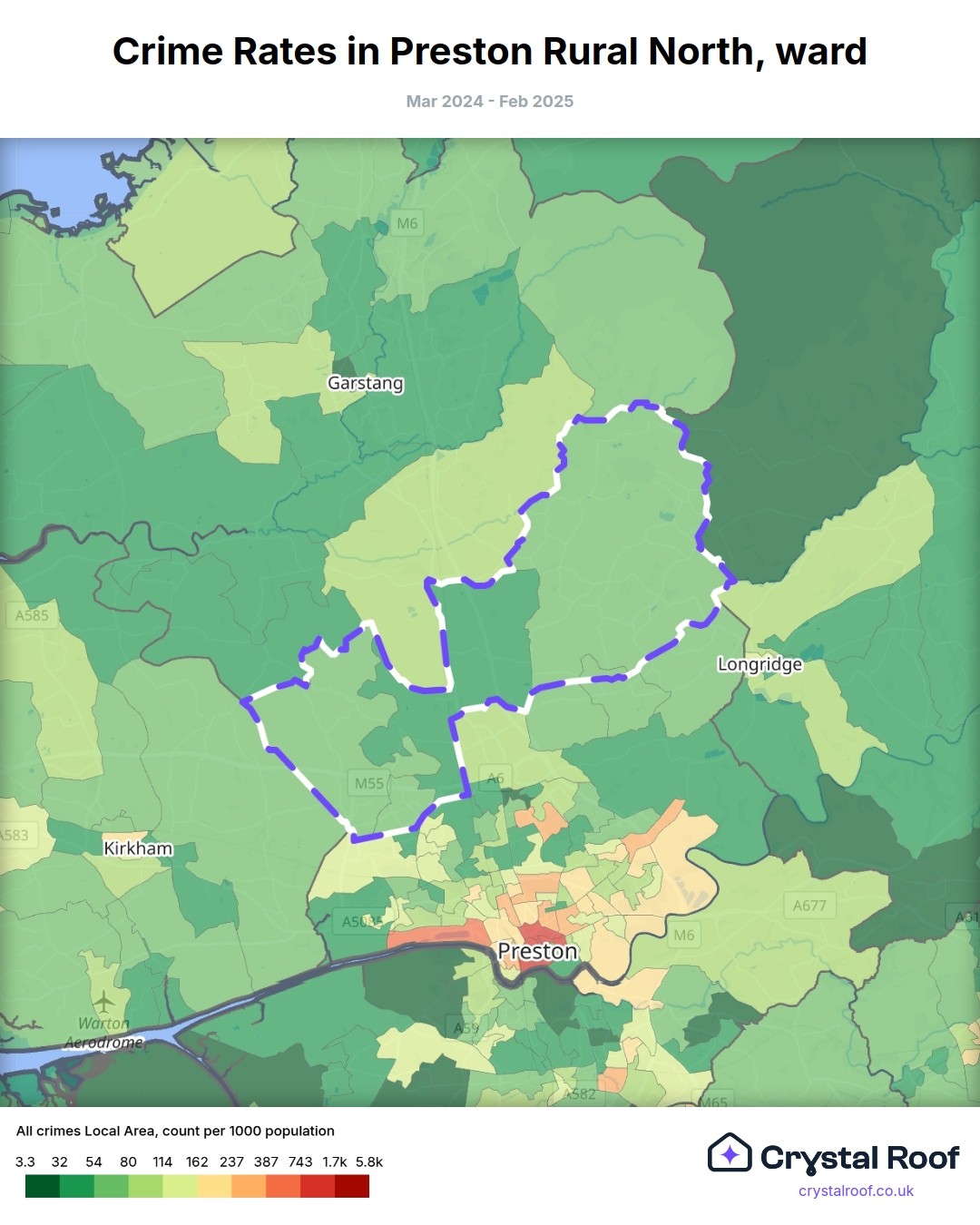 Preston Rural North, (ward) includes areas with the following crime ratings (see map):