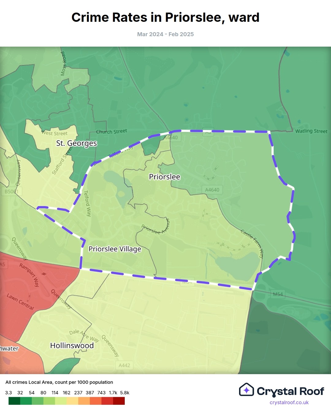 Priorslee, (ward) includes areas with the following crime ratings (see map):