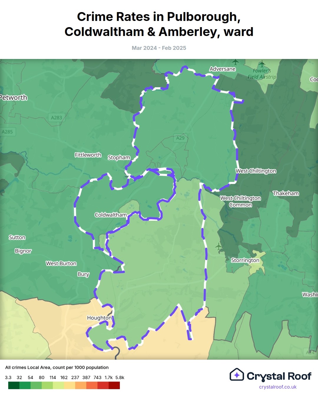 Pulborough, Coldwaltham & Amberley, (ward) includes areas with the following crime ratings (see map):