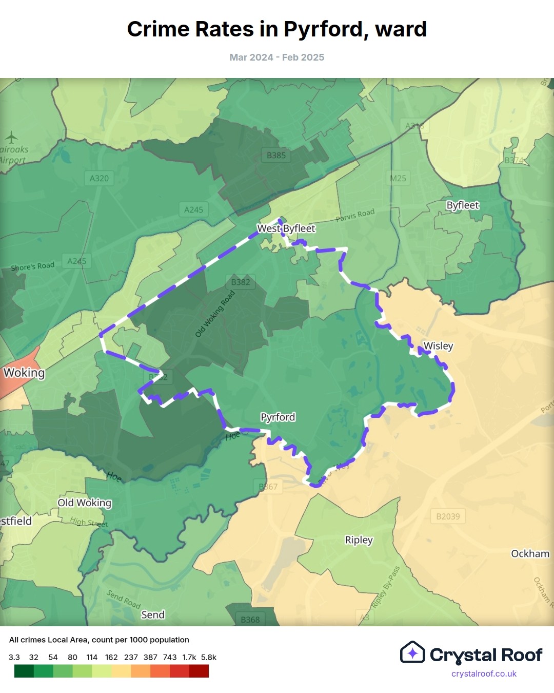 Pyrford, (ward) includes areas with the following crime ratings (see map):