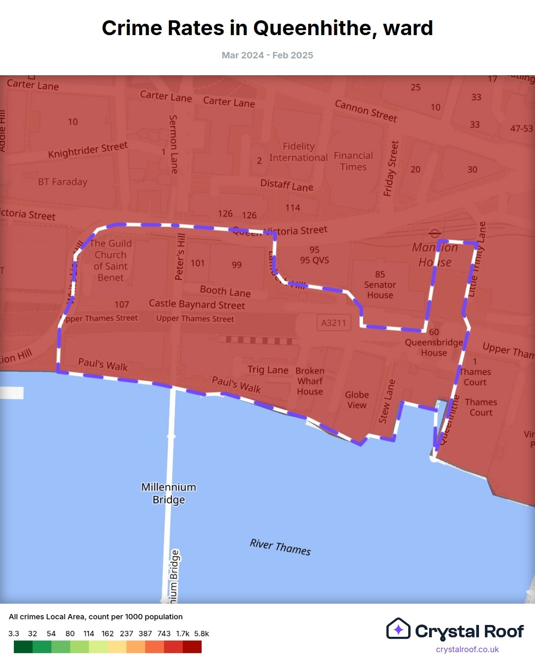 Queenhithe, (ward) includes areas with the following crime ratings (see map):