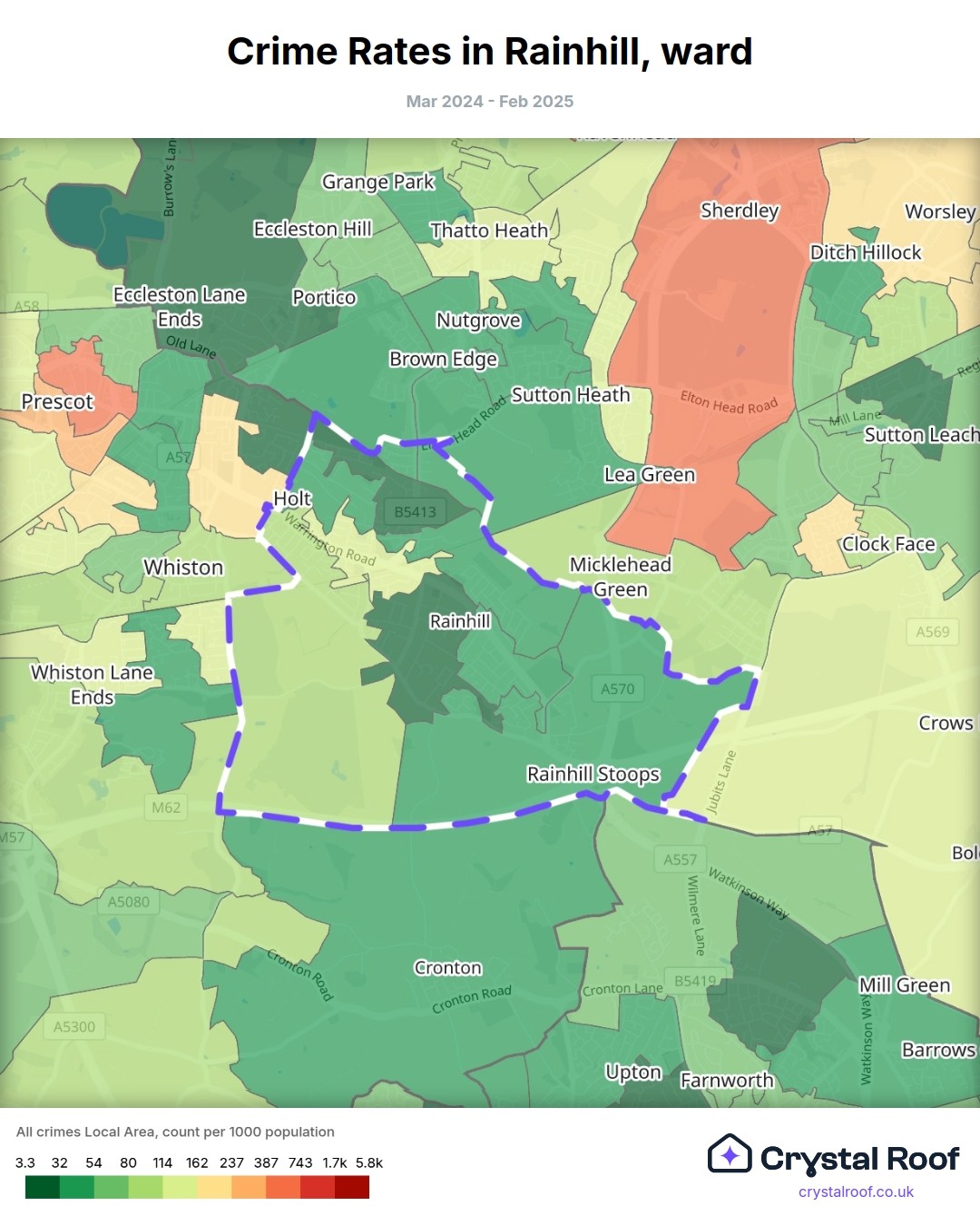 Rainhill, (ward) includes areas with the following crime ratings (see map):