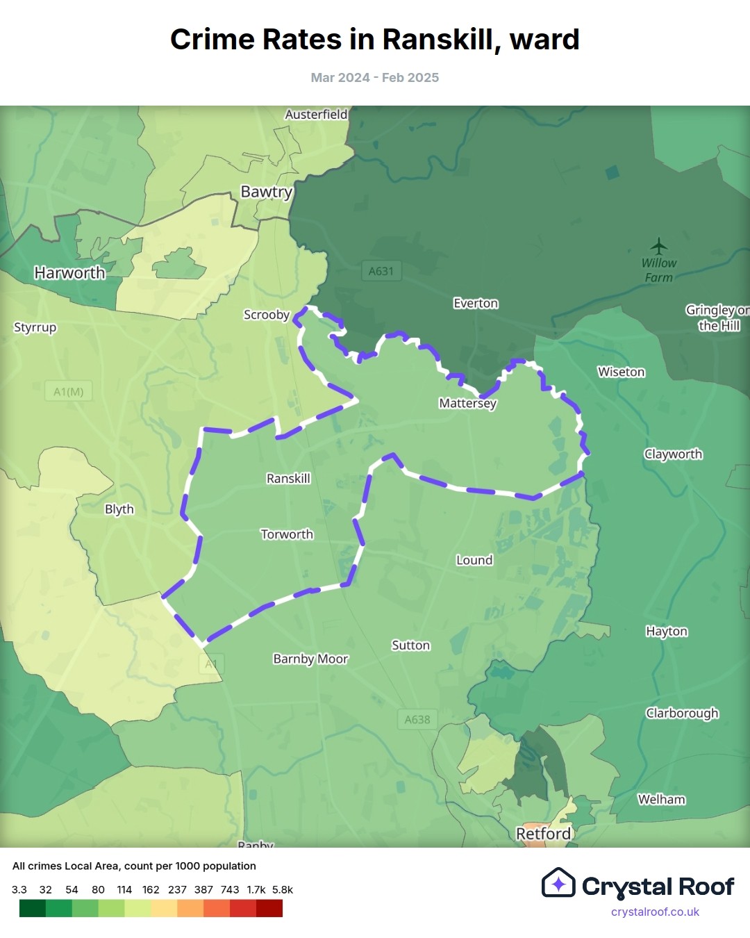 Ranskill, (ward) includes areas with the following crime ratings (see map):