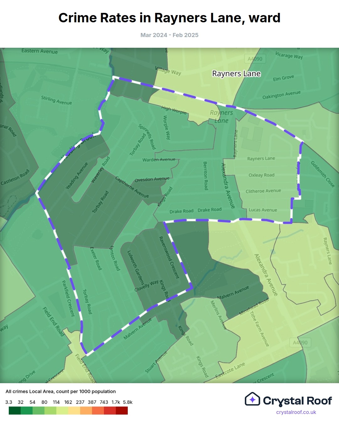 Rayners Lane, (ward) includes areas with the following crime ratings (see map):