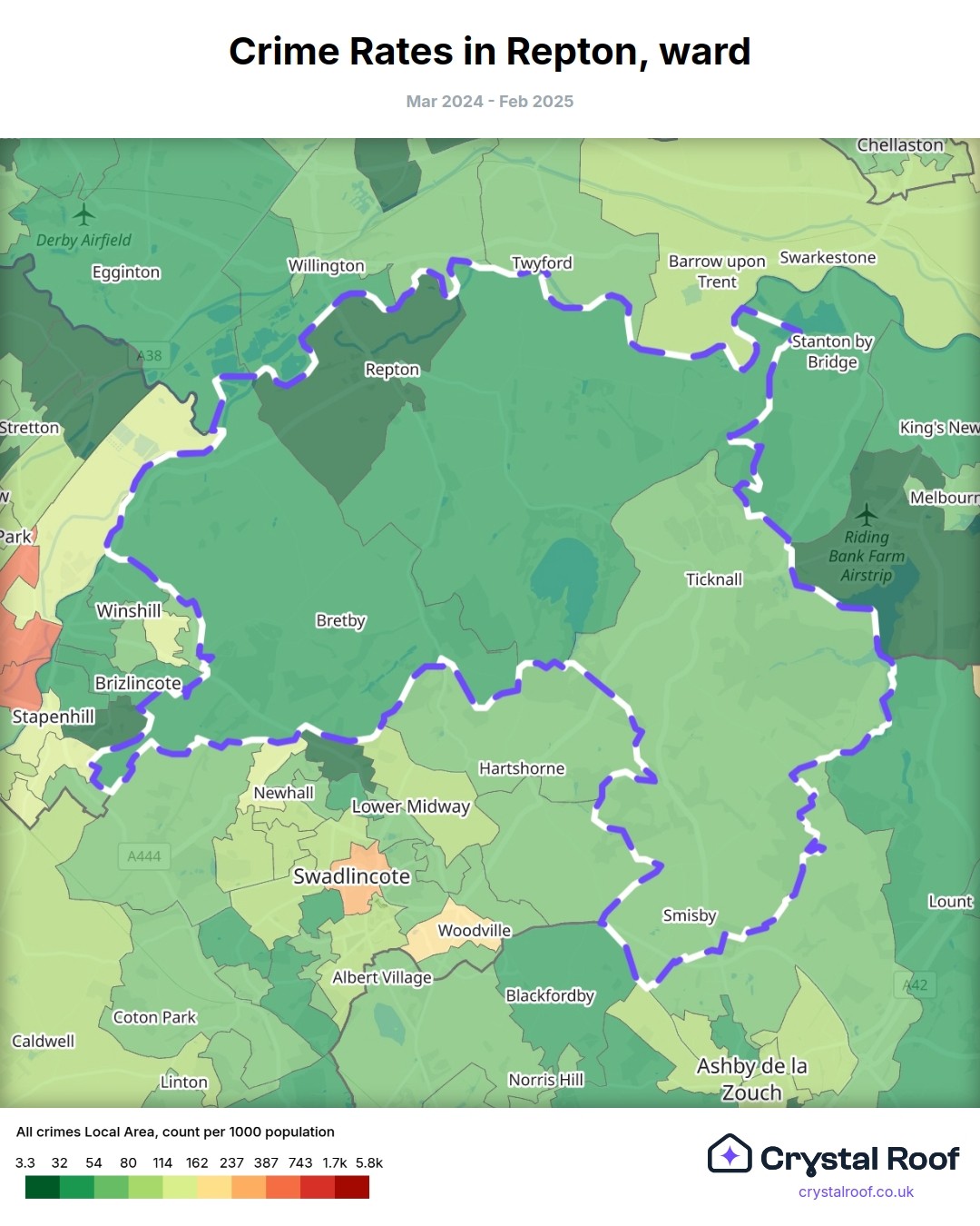 Repton, (ward) includes areas with the following crime ratings (see map):