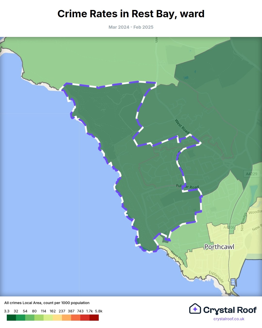 Rest Bay, (ward) includes areas with the following crime ratings (see map):