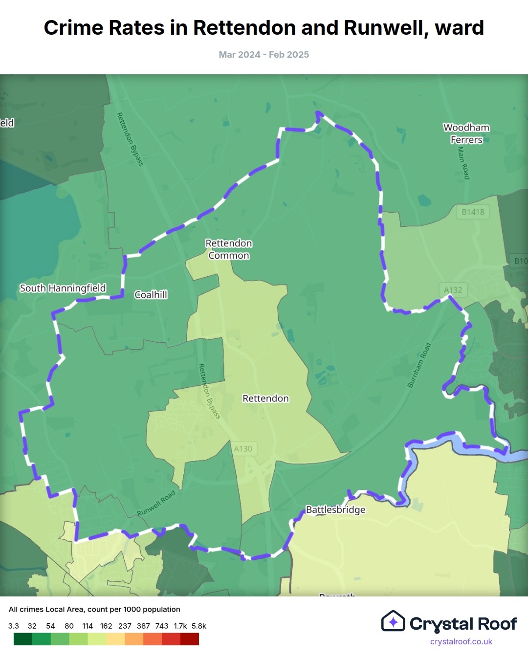Rettendon and Runwell, (ward) includes areas with the following crime ratings (see map):