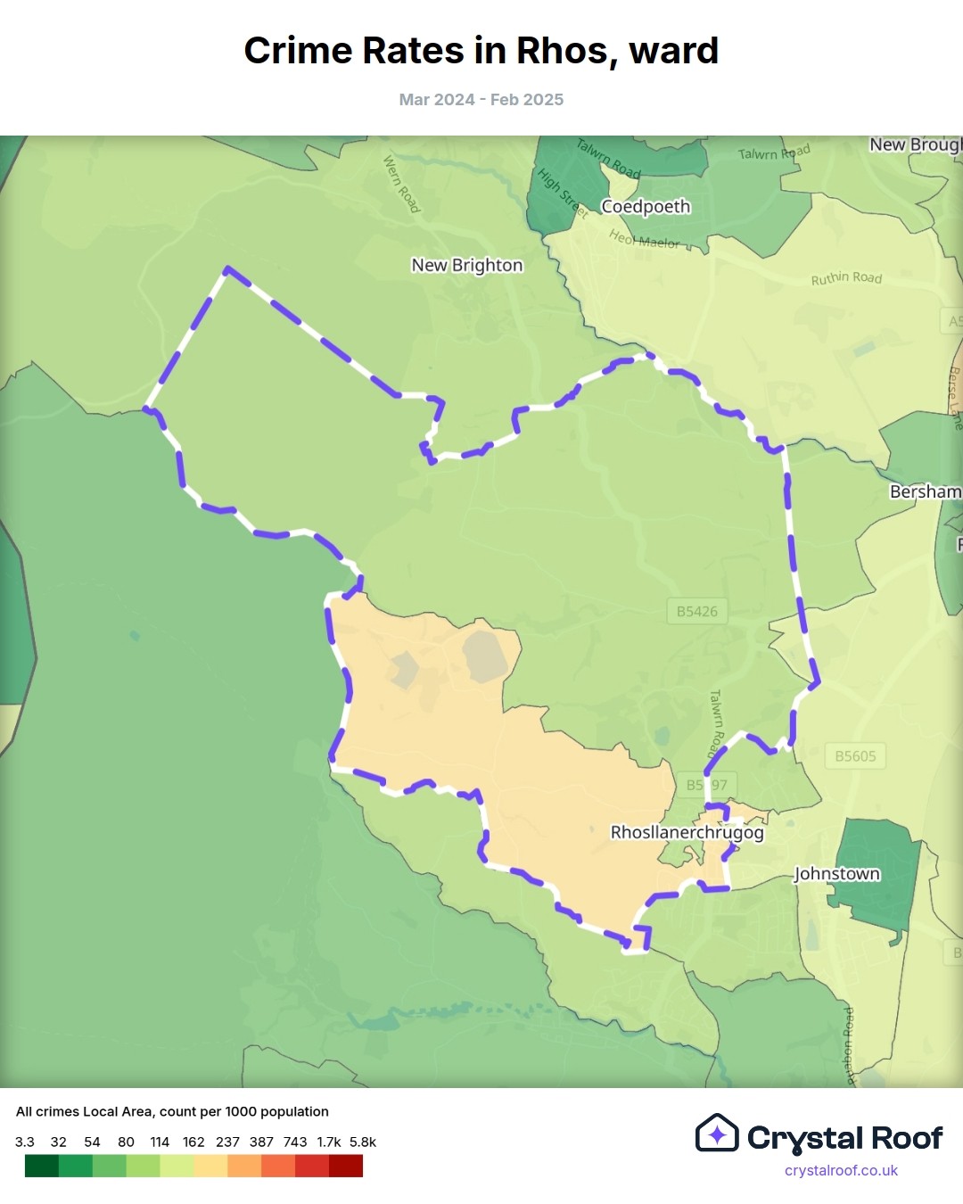 Rhos, (ward) includes areas with the following crime ratings (see map):