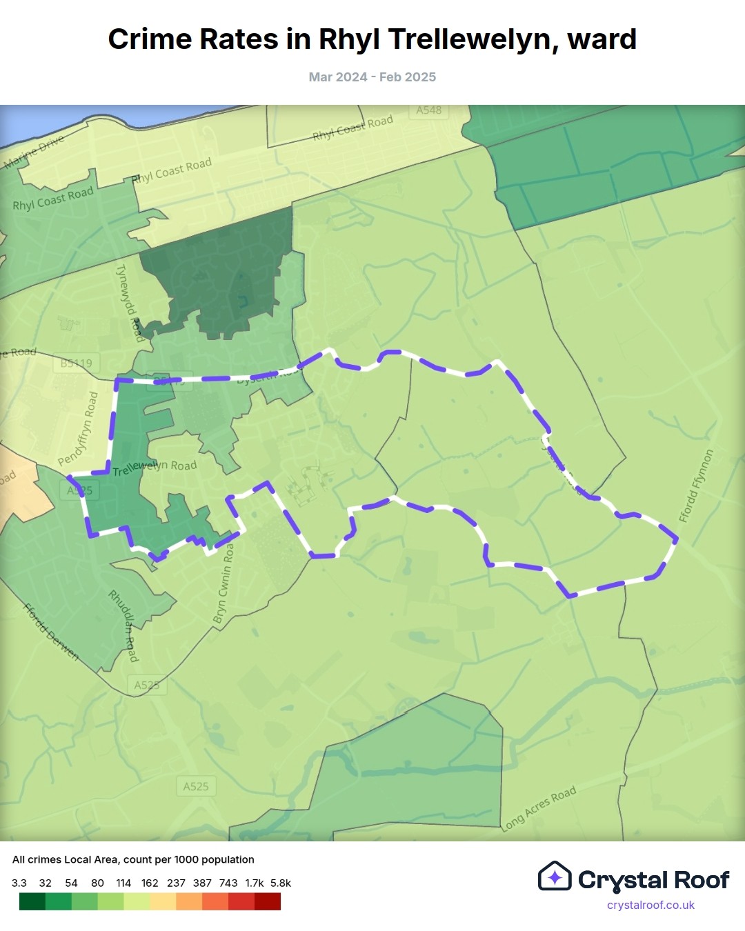 Rhyl Trellewelyn, (ward) includes areas with the following crime ratings (see map):