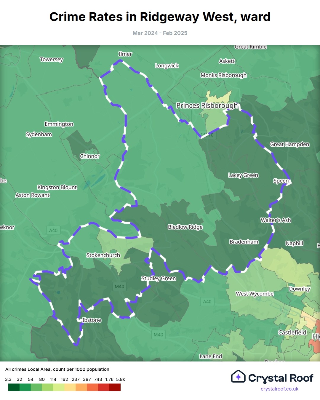 Ridgeway West, (ward) includes areas with the following crime ratings (see map):