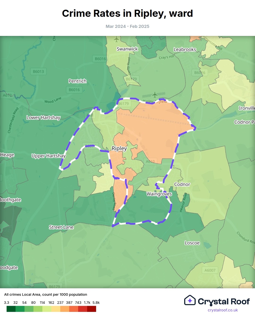 Ripley, (ward) includes areas with the following crime ratings (see map):