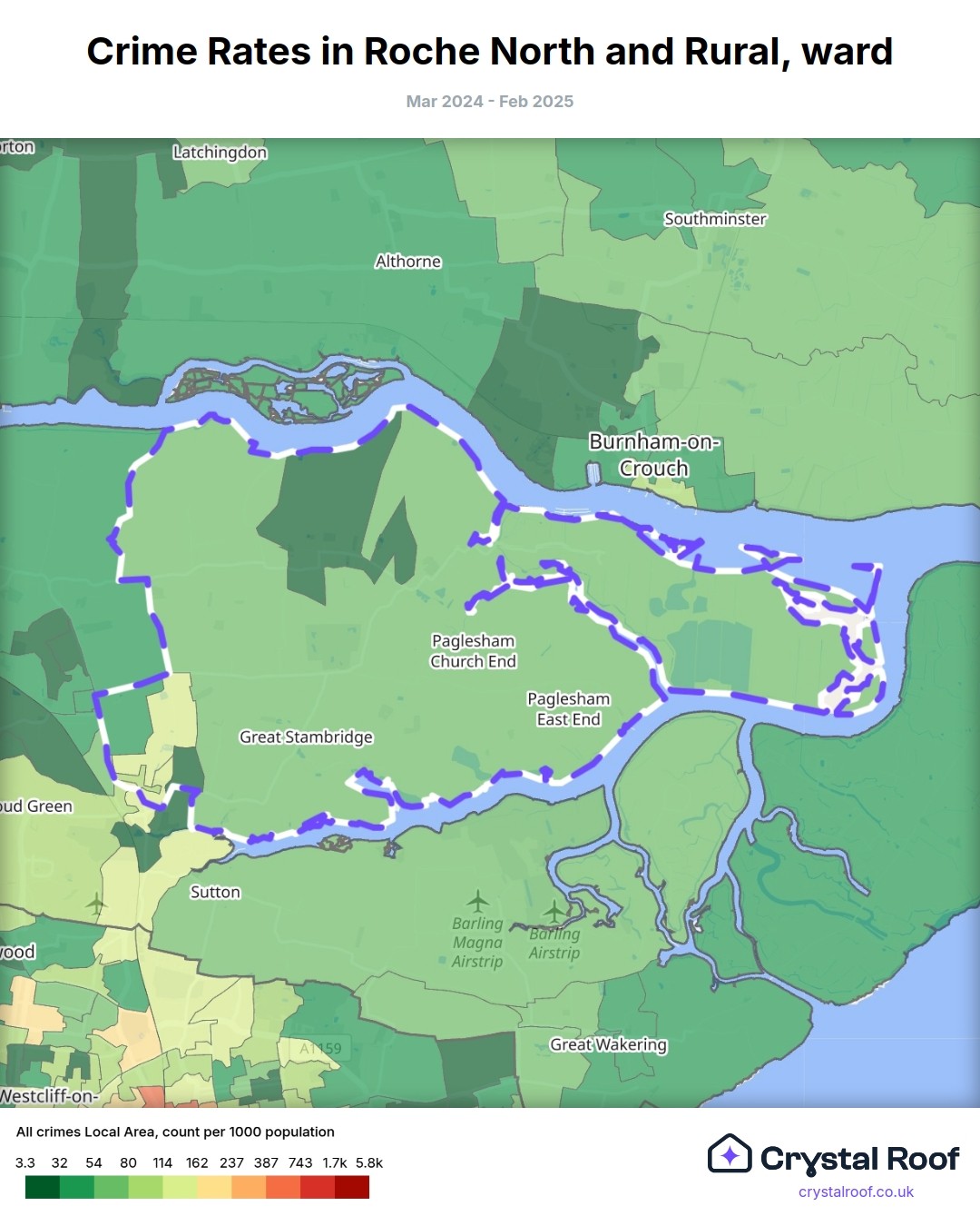 Roche North and Rural, (ward) includes areas with the following crime ratings (see map):