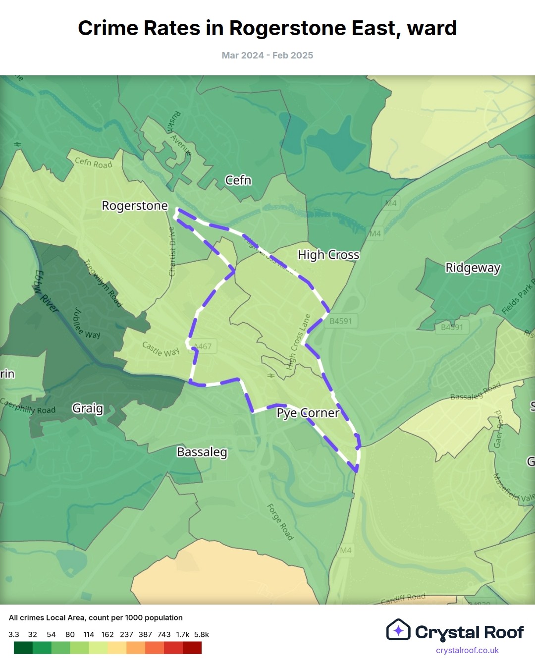 Rogerstone East, (ward) includes areas with the following crime ratings (see map):