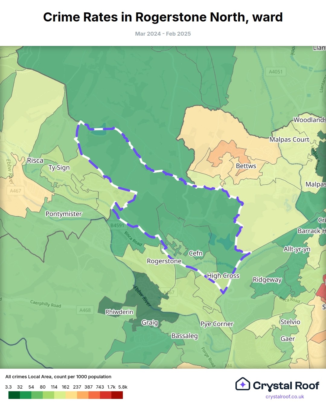 Rogerstone North, (ward) includes areas with the following crime ratings (see map):