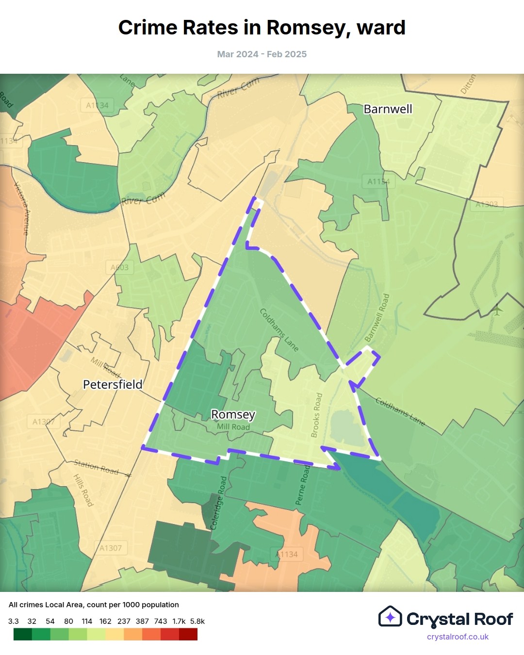 Romsey, (ward) includes areas with the following crime ratings (see map):