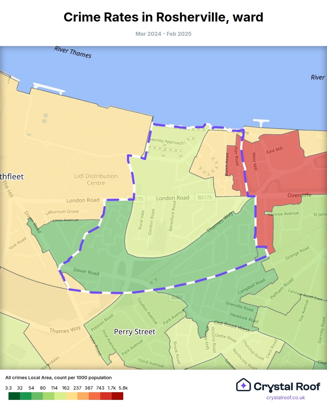 Rosherville, (ward) includes areas with the following crime ratings (see map):