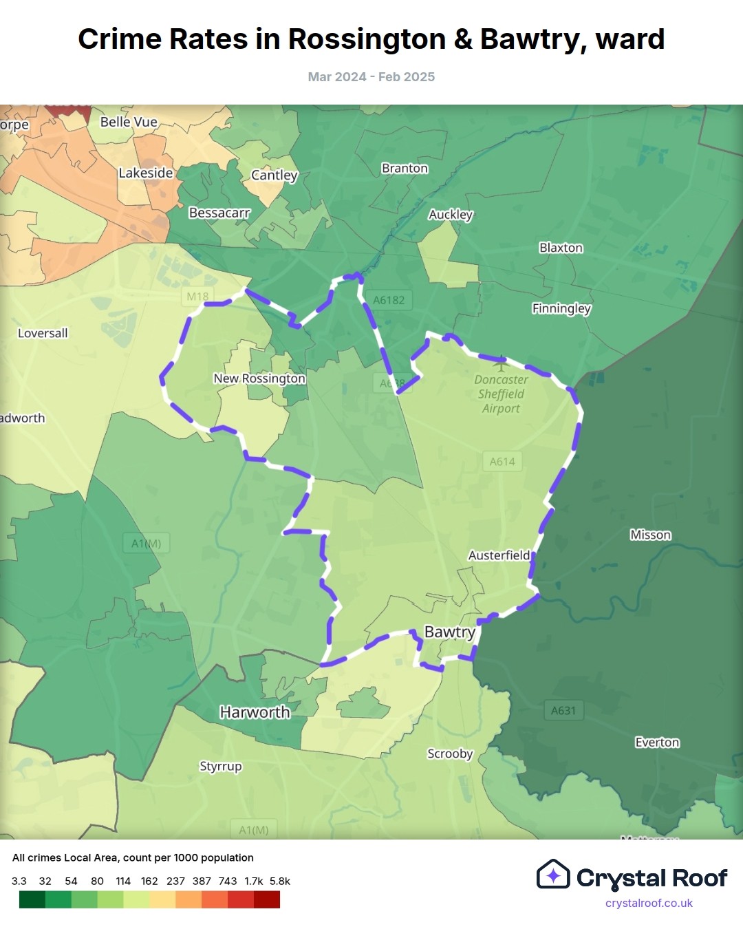 Rossington & Bawtry, (ward) includes areas with the following crime ratings (see map):
