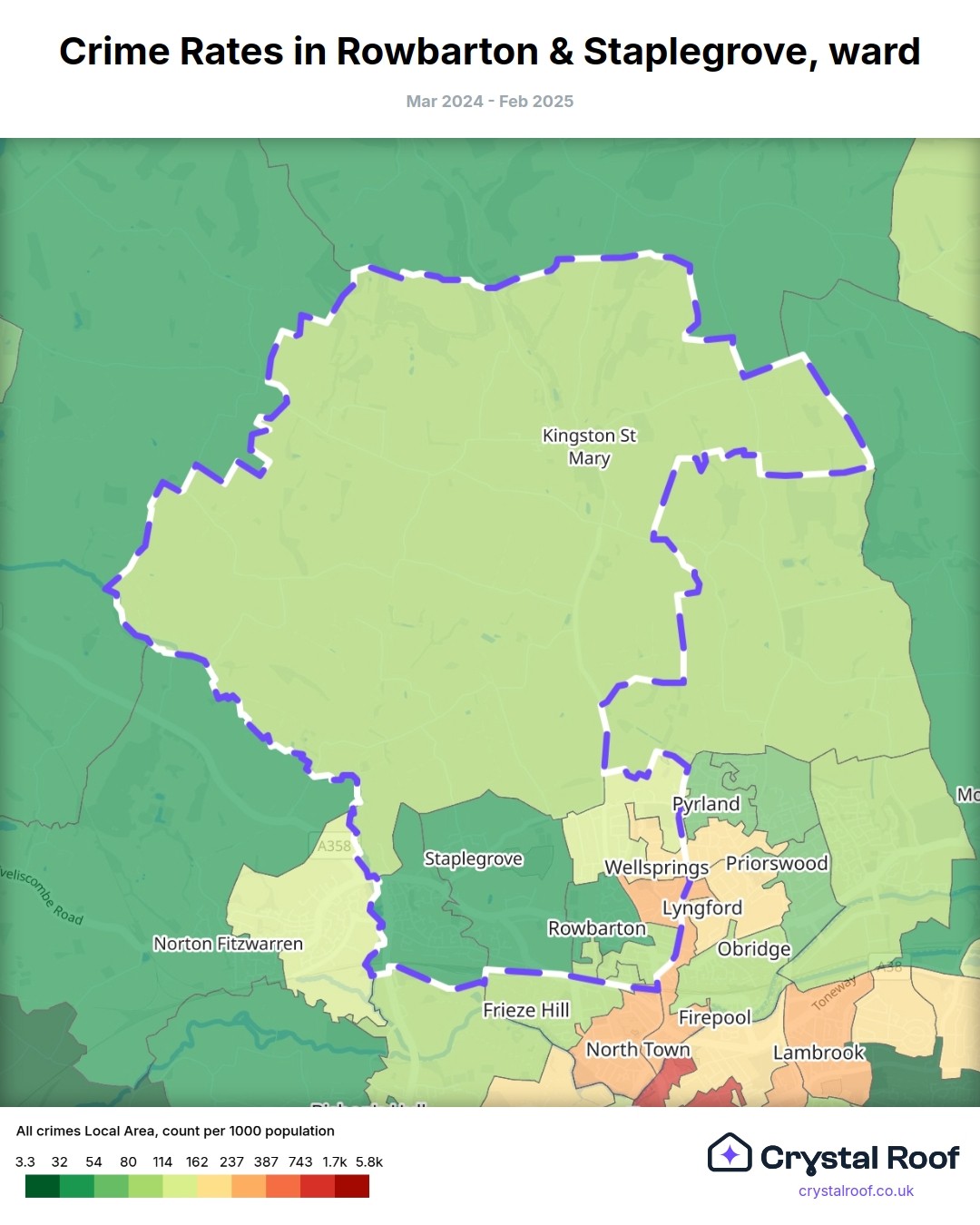 Above are annual crime rates in Rowbarton & Staplegrove (ward) by crime type.
