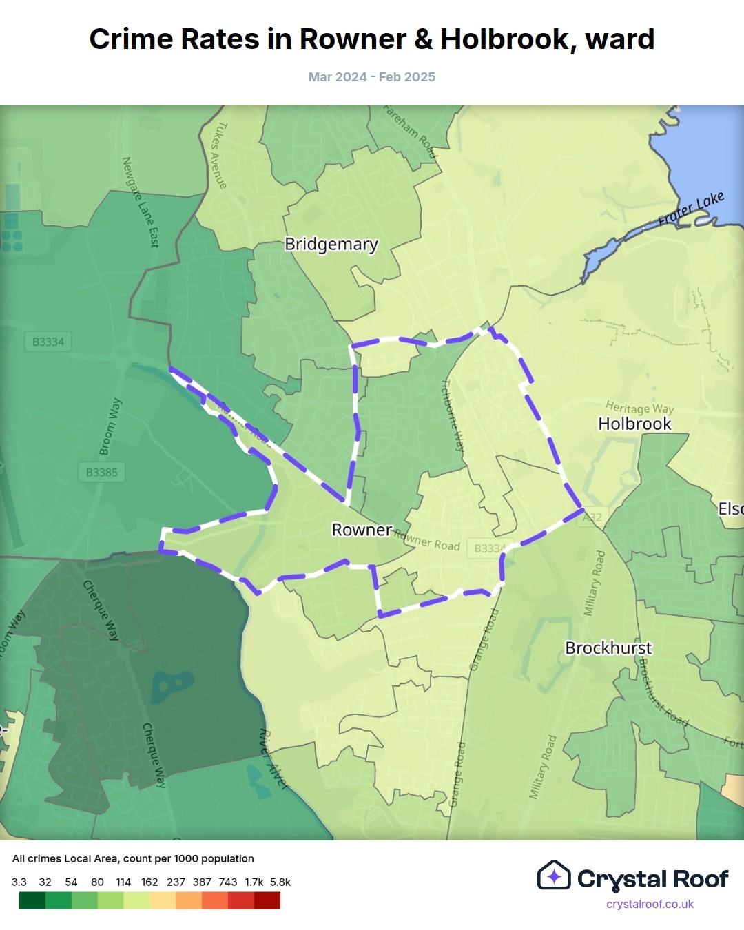 Rowner & Holbrook, (ward) includes areas with the following crime ratings (see map):