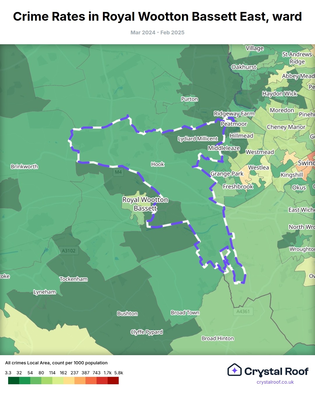 Royal Wootton Bassett East, (ward) includes areas with the following crime ratings (see map):