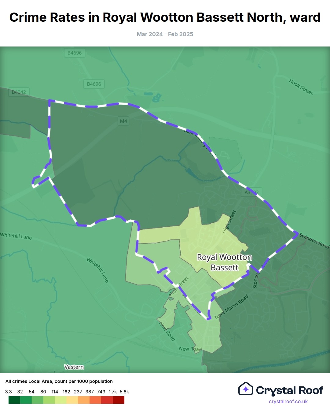 Royal Wootton Bassett North, (ward) includes areas with the following crime ratings (see map):