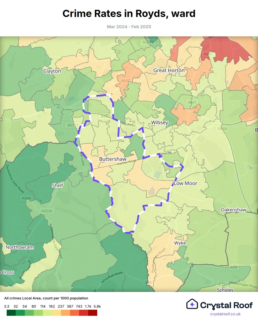 Royds, (ward) includes areas with the following crime ratings (see map):