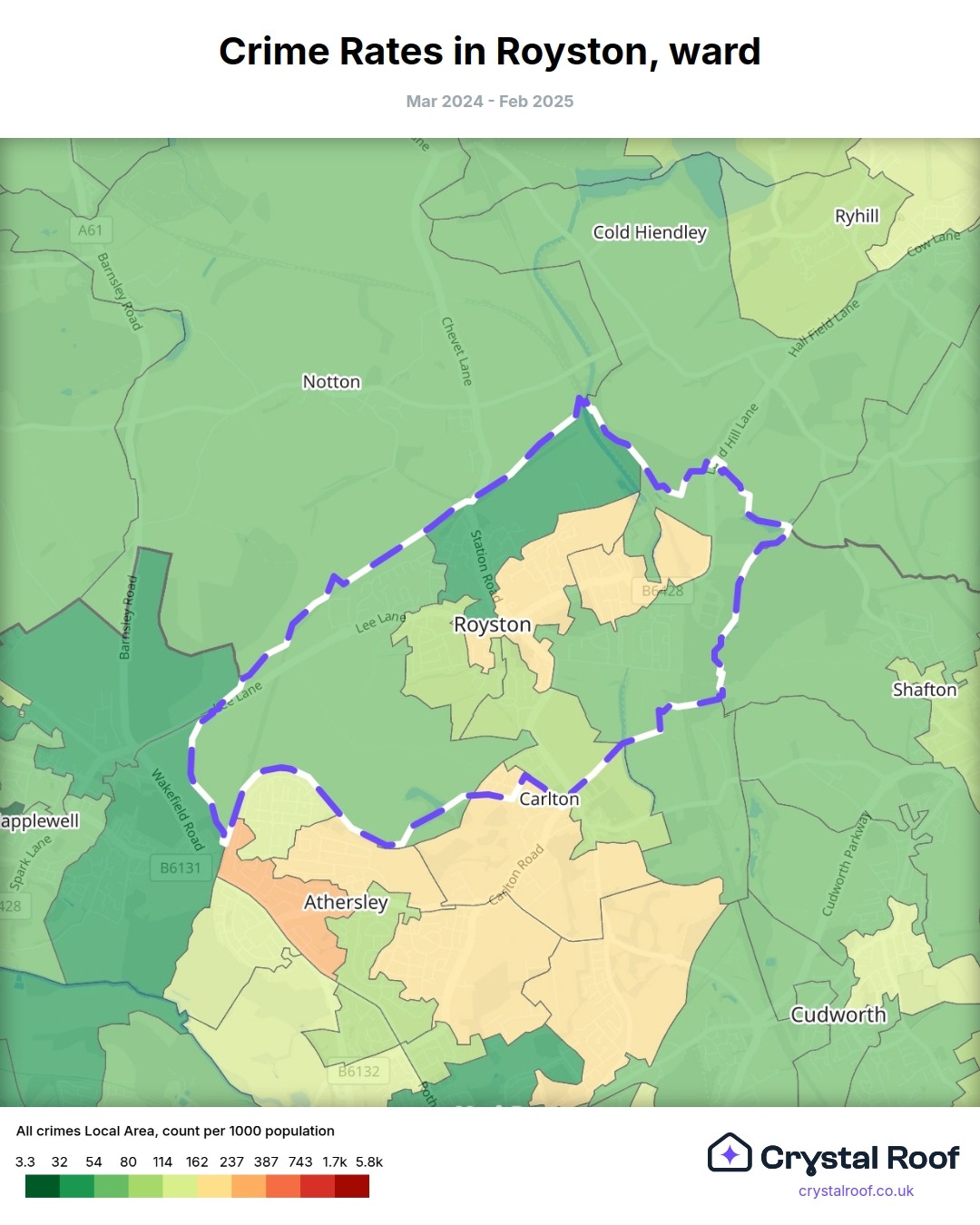 Royston, (ward) includes areas with the following crime ratings (see map):