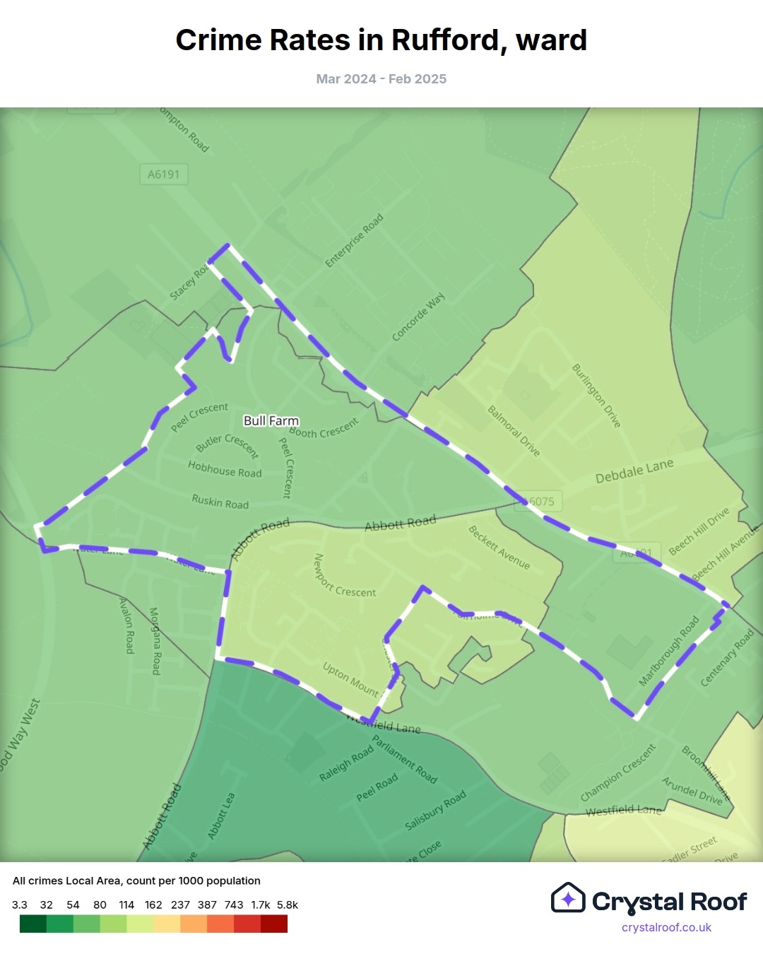 Rufford, (ward) includes areas with the following crime ratings (see map):