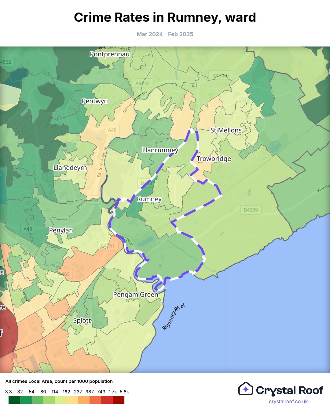 Rumney, (ward) includes areas with the following crime ratings (see map):