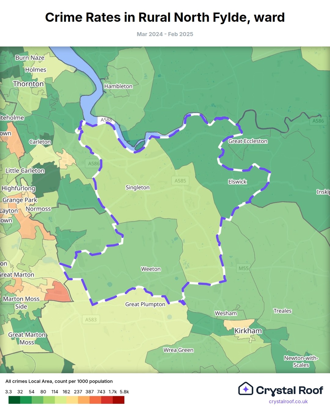 Rural North Fylde, (ward) includes areas with the following crime ratings (see map):