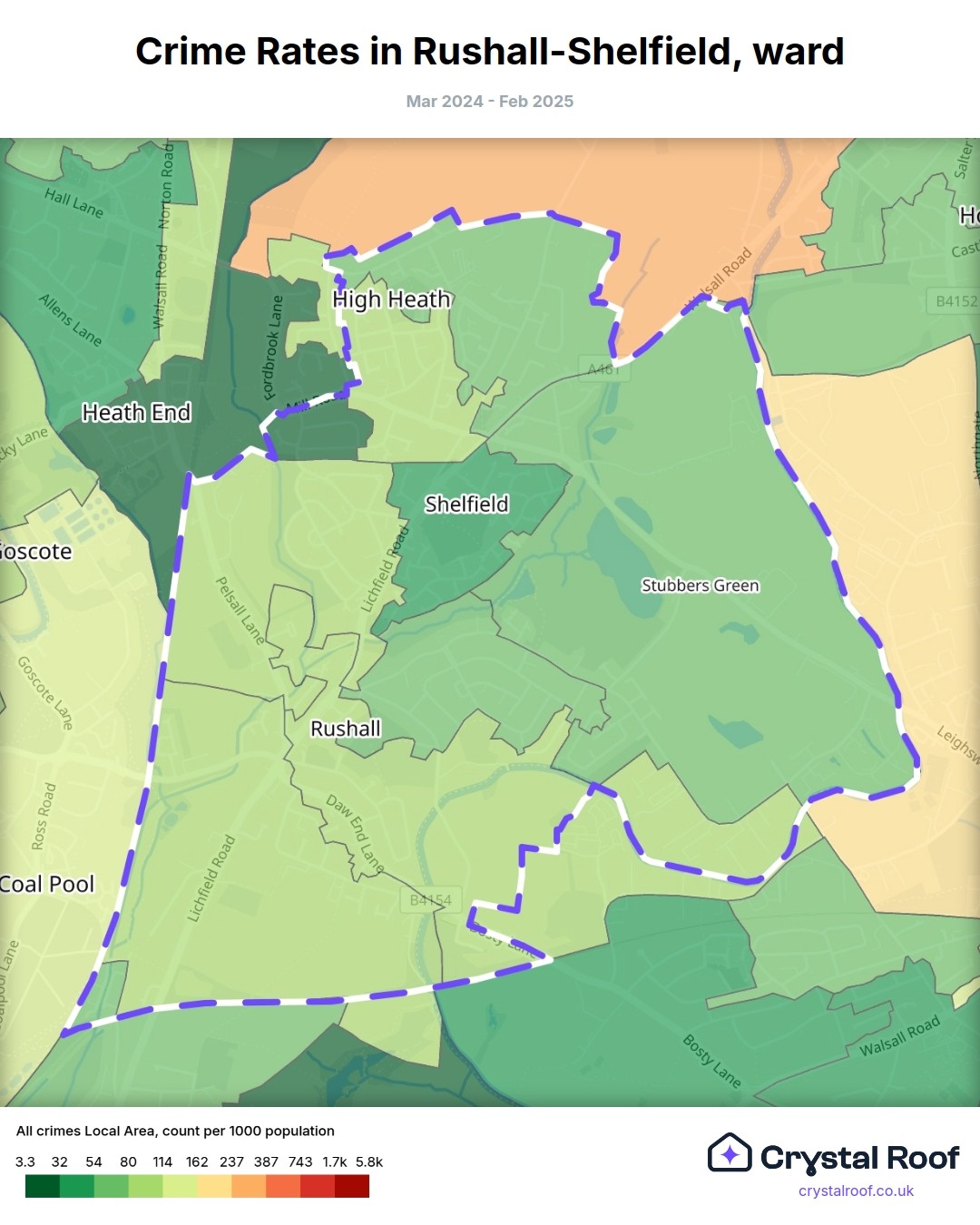 Rushall-Shelfield, (ward) includes areas with the following crime ratings (see map):