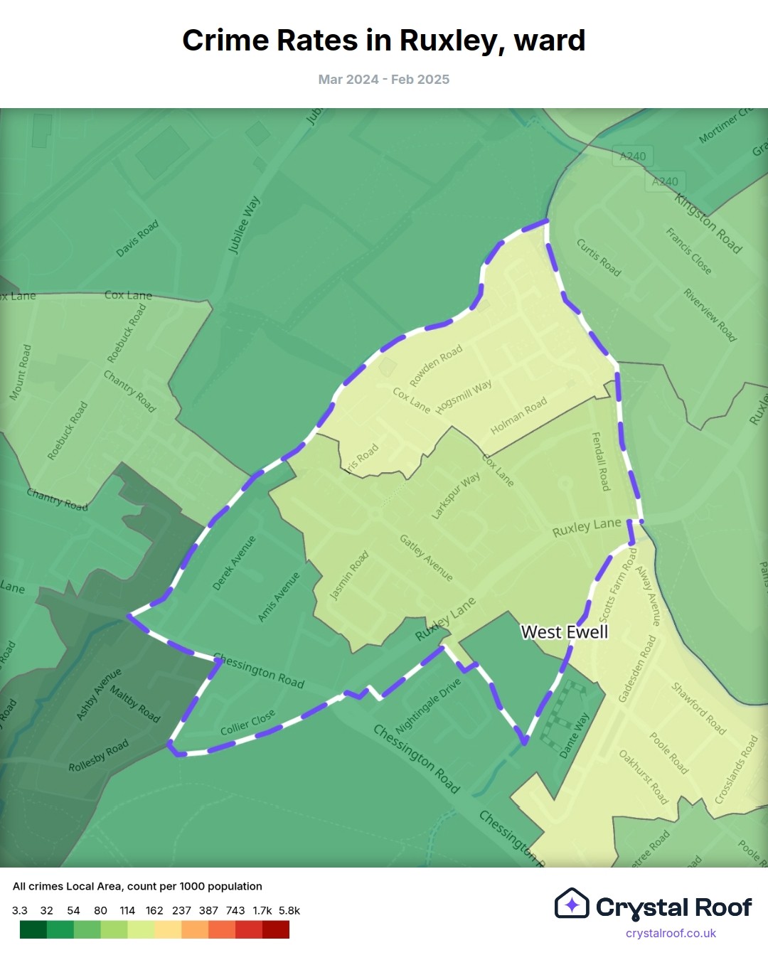 Ruxley, (ward) includes areas with the following crime ratings (see map):