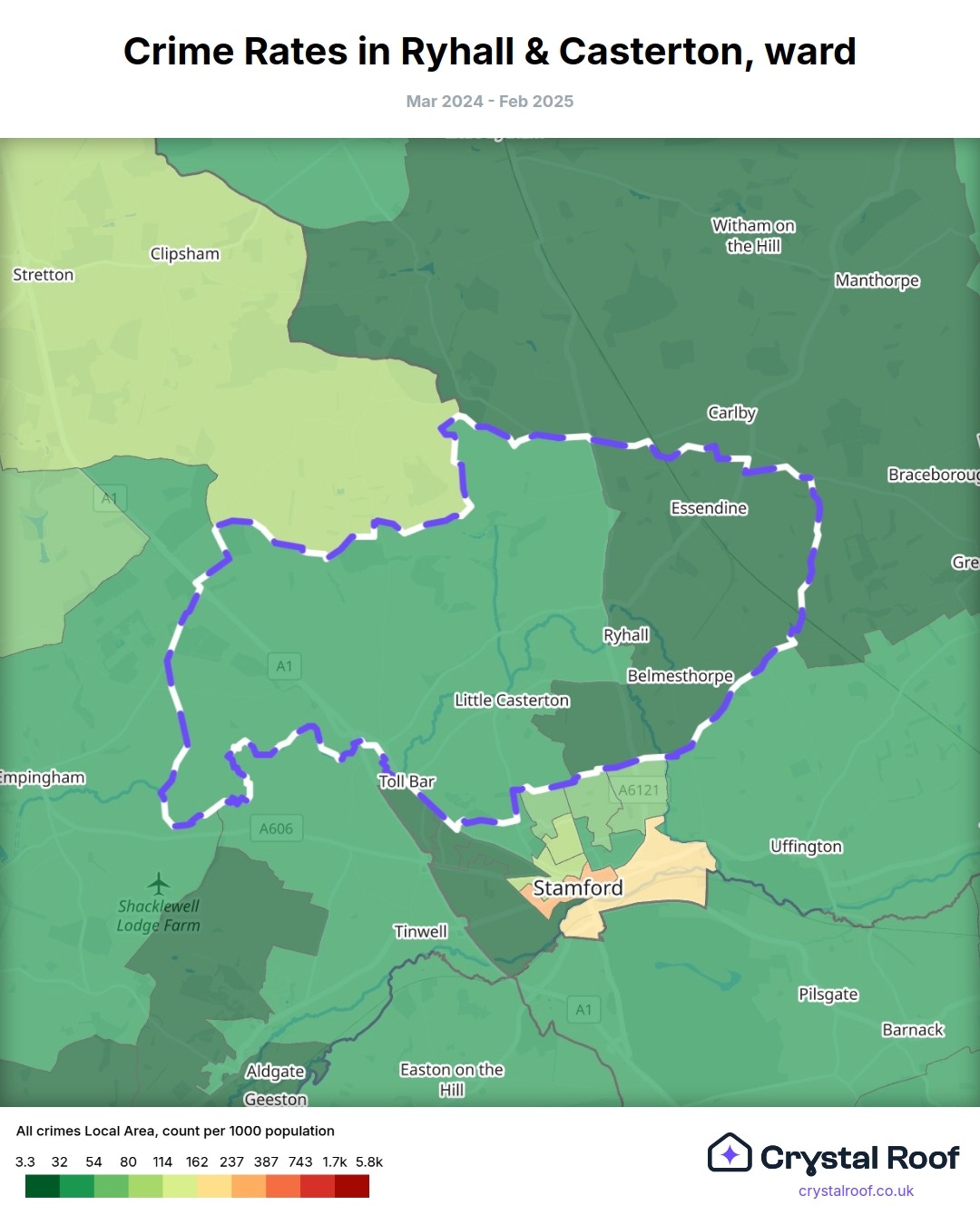 Ryhall & Casterton, (ward) includes areas with the following crime ratings (see map):