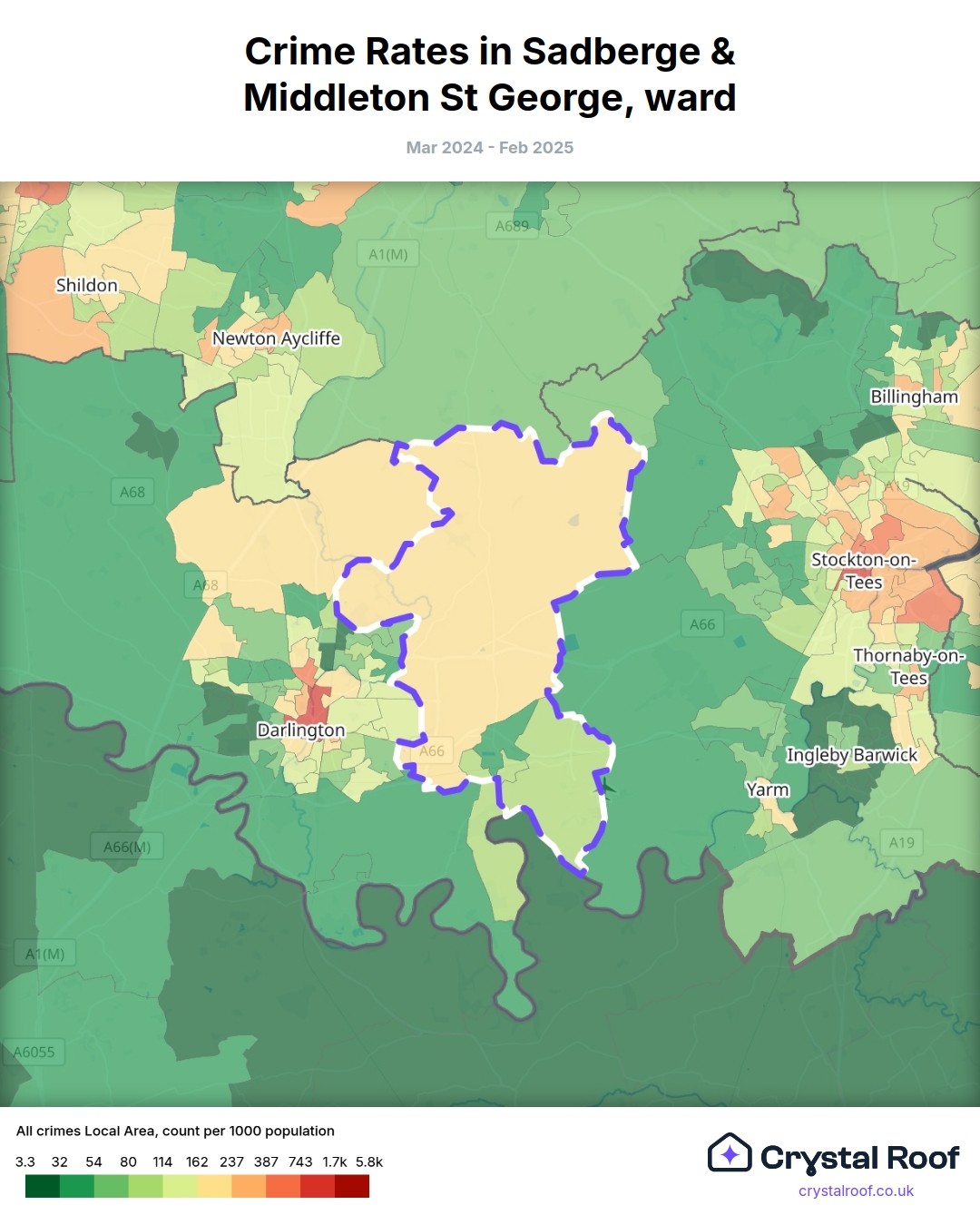 Sadberge & Middleton St George, (ward) includes areas with the following crime ratings (see map):