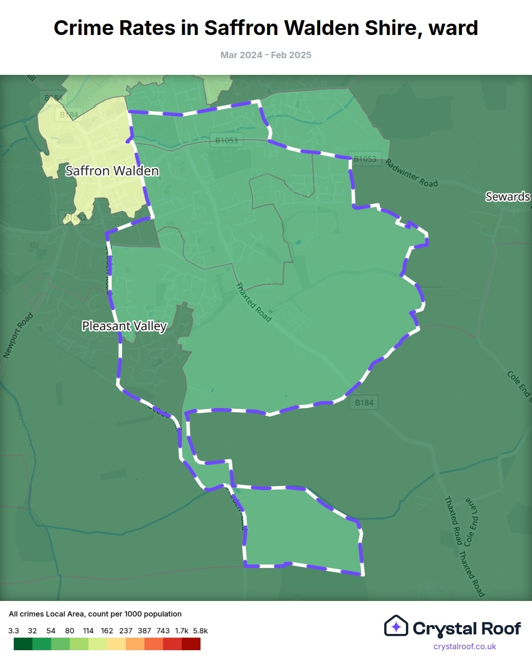 Saffron Walden Shire, (ward) includes areas with the following crime ratings (see map):