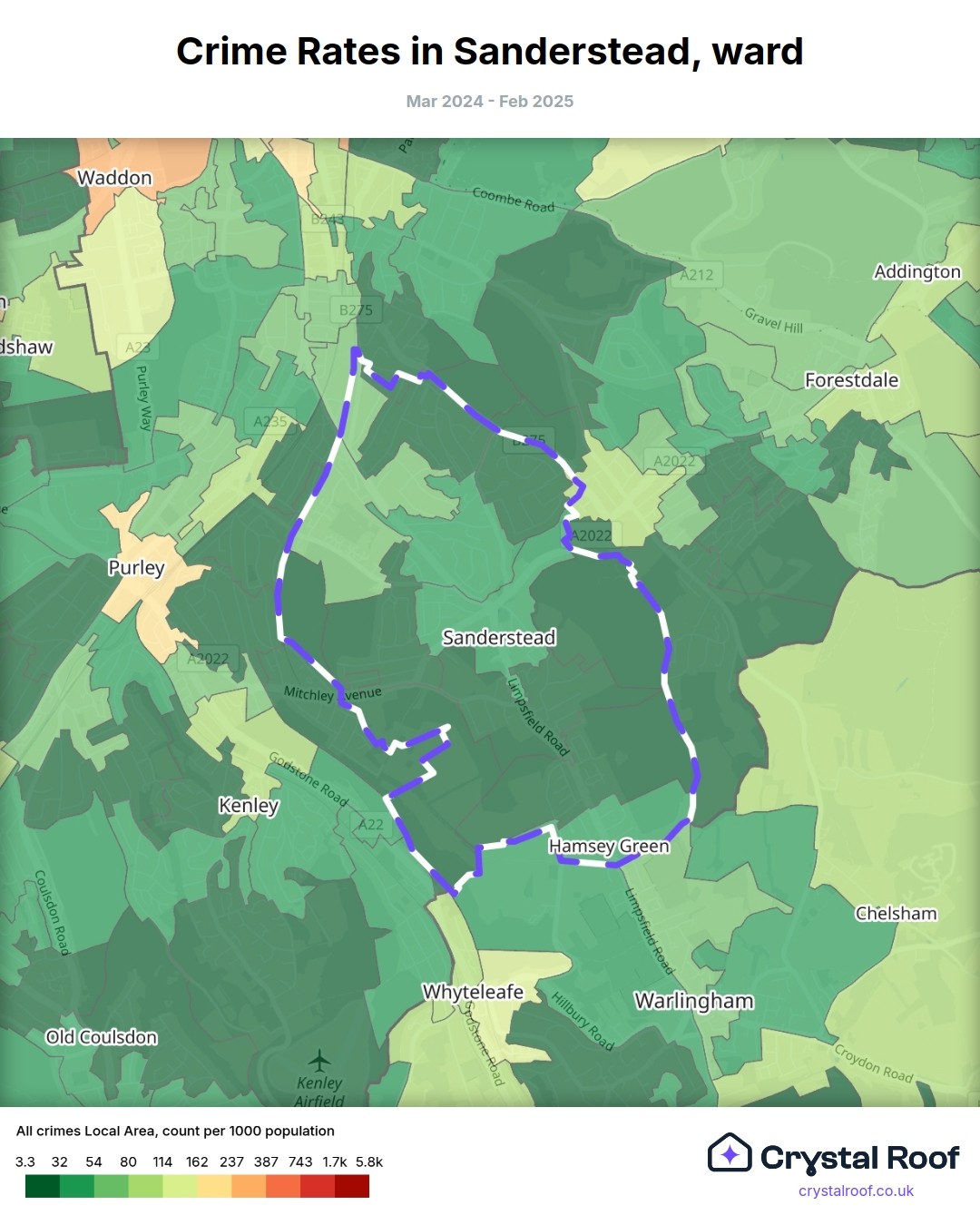 Sanderstead, (ward) includes areas with the following crime ratings (see map):