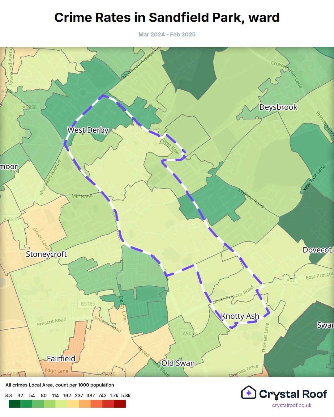 Sandfield Park, (ward) includes areas with the following crime ratings (see map):
