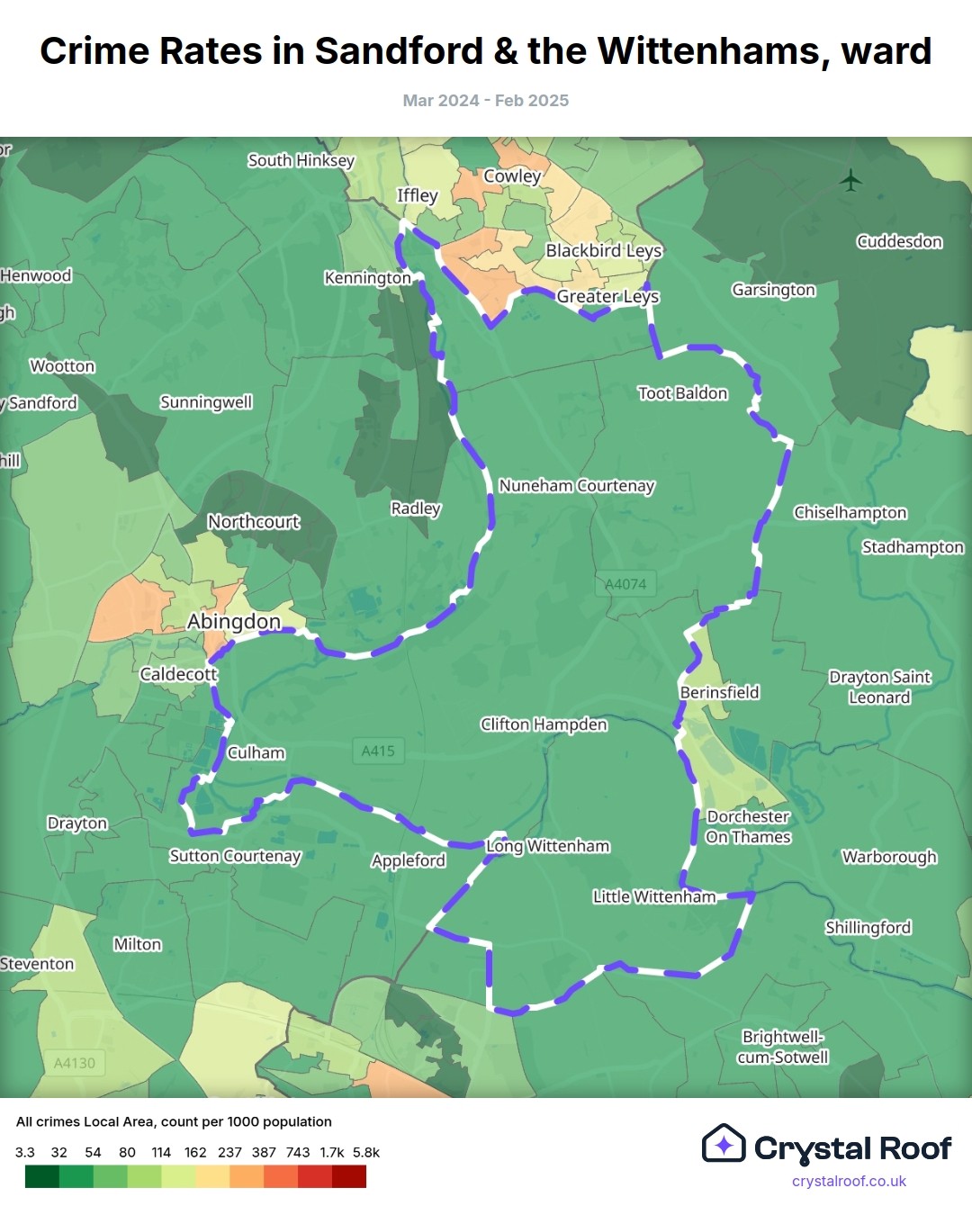 Sandford & the Wittenhams, (ward) includes areas with the following crime ratings (see map):