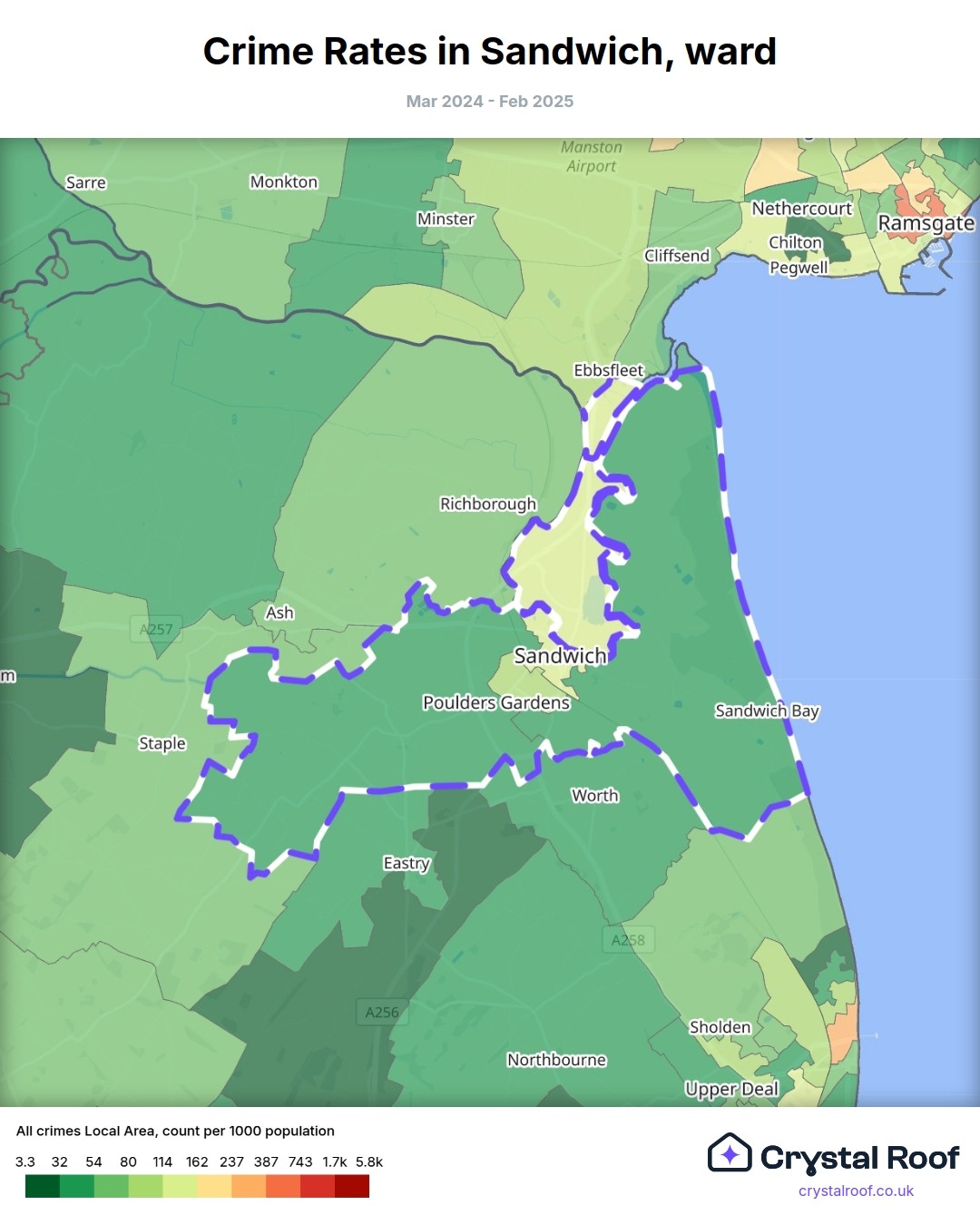 Sandwich, (ward) includes areas with the following crime ratings (see map):