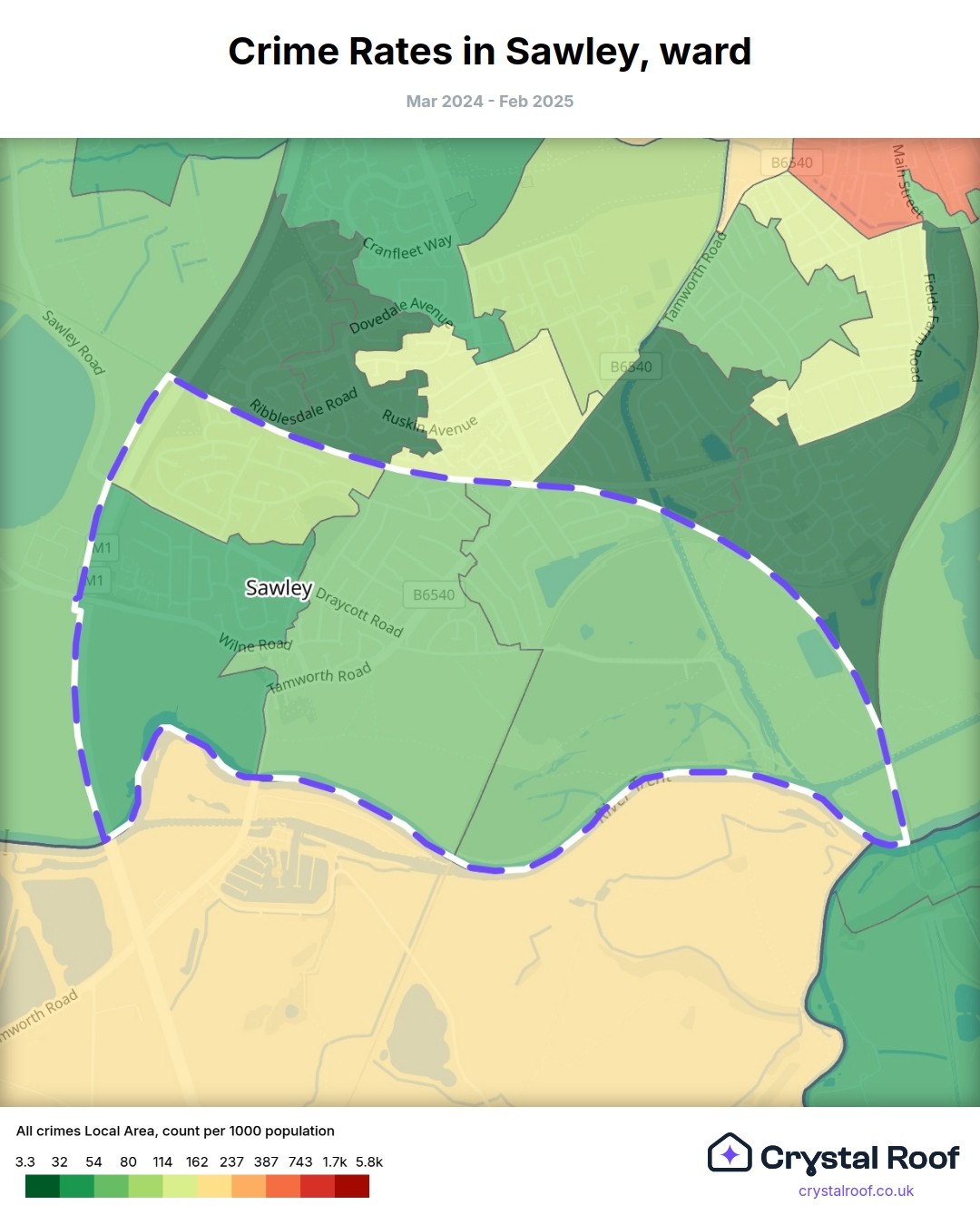 Sawley, (ward) includes areas with the following crime ratings (see map):
