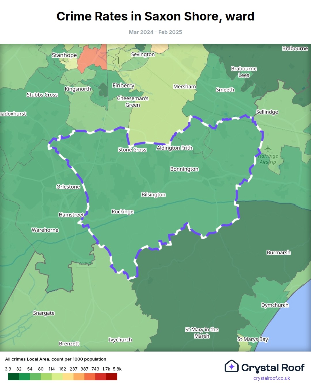 Saxon Shore, (ward) includes areas with the following crime ratings (see map):