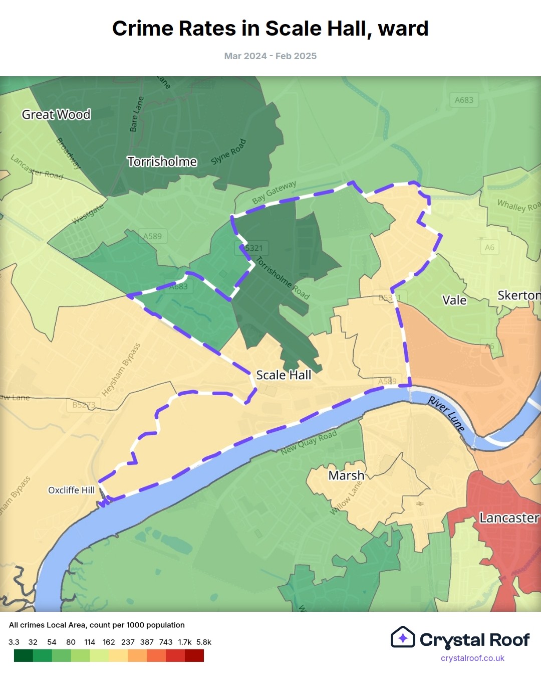 Scale Hall, (ward) includes areas with the following crime ratings (see map):