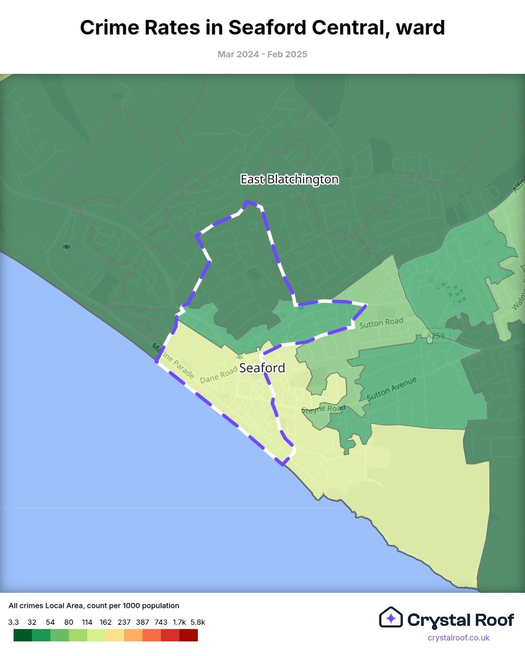 Seaford Central, (ward) includes areas with the following crime ratings (see map):