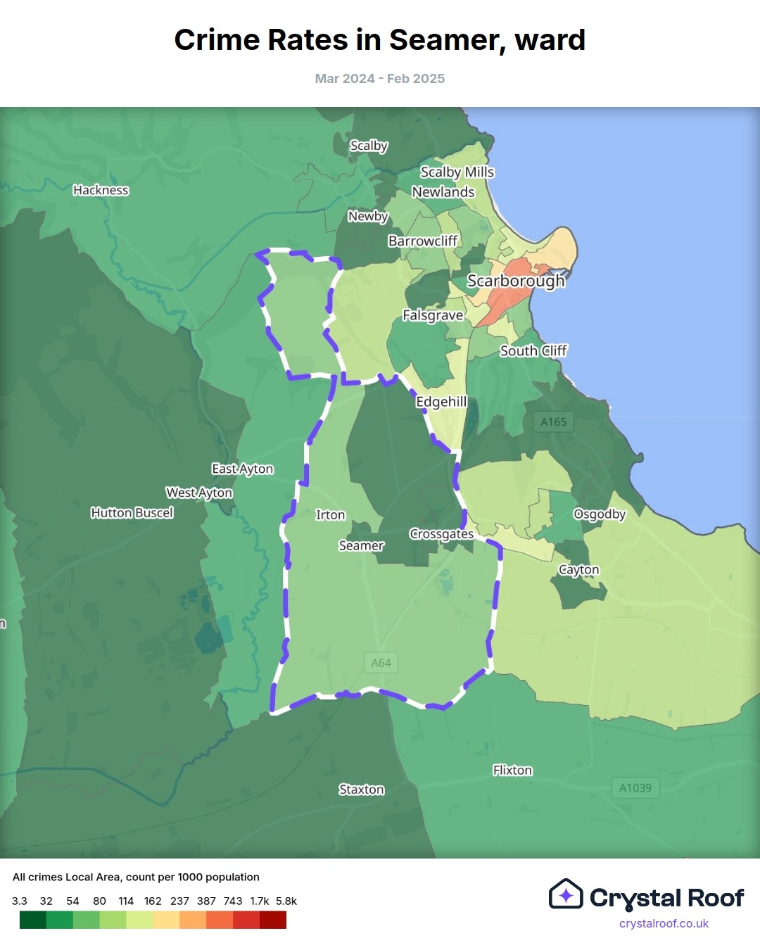 Seamer, (ward) includes areas with the following crime ratings (see map):