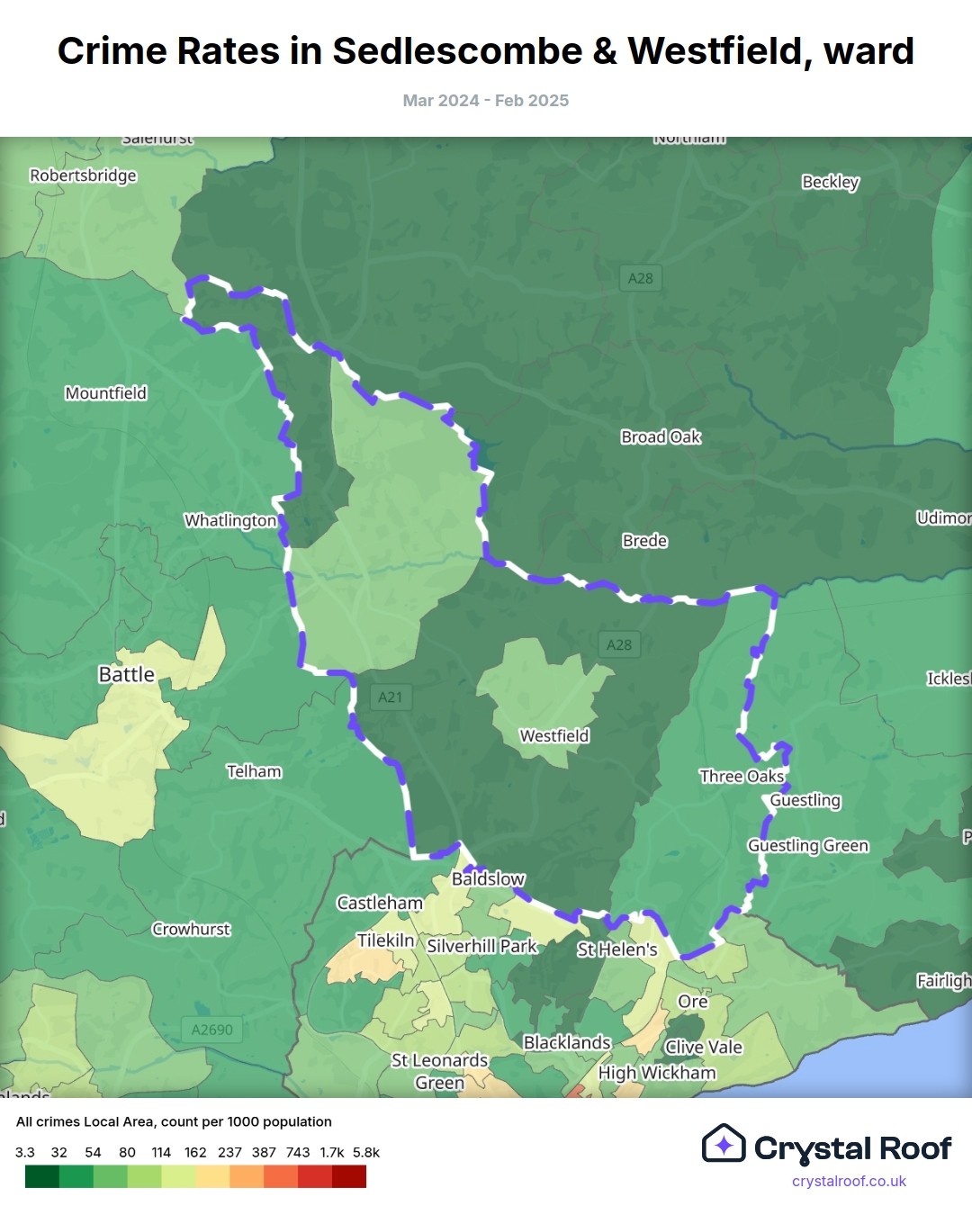 Sedlescombe & Westfield, (ward) includes areas with the following crime ratings (see map):